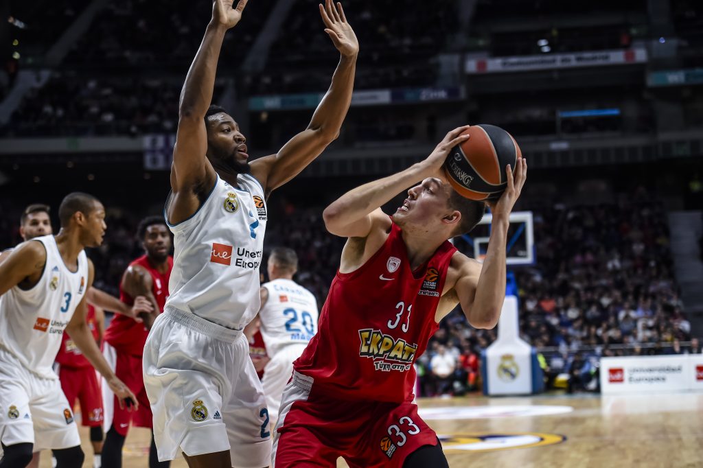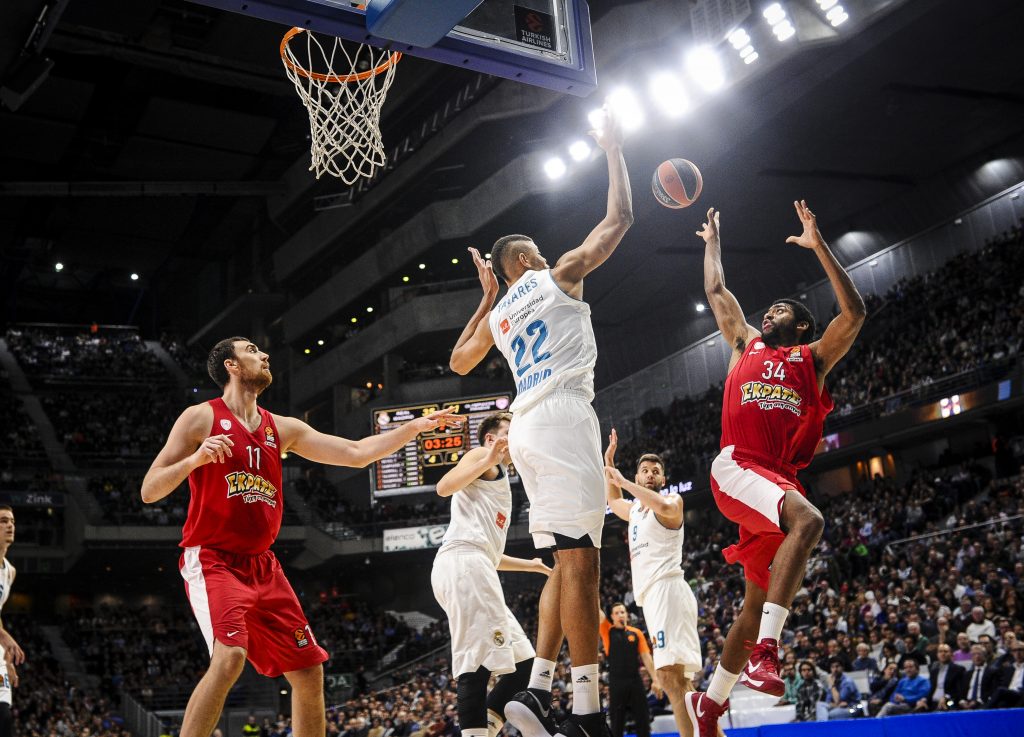 Τα πρώτα λεπτά έδειχναν προς μία μάχη... σώμα με σώμα αναφορικά με τη διακύμανση του σκορ. Και μπορεί η Ρεάλ Μαδρίτης να πήρε πρώτη ένα μικρό προβάδισμα (13-9, 5’) με τον Ταβάρες «σκιάχτρο» στη ρακέτα, αλλά και τους Μιλουτίνοφ – Πρίντεζη να κάνουν καλή δουλειά. Και να βοηθούν στο 8-0 των «ερυθρόλευκων» για το 13-18 (8’10’’).