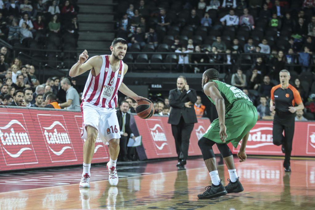 Ο Ολυμπιακός φάνηκε να βρίσκει σφυγμό μετά από συνεχείς αλλαγές από τον Μπλατ, που αναζητούσε και αυτός το ιδανικό σχήμα. Αξίζει να σημειωθεί πως ξεκίνησε με μια πεντάδα που δεν συνηθίζει (Σπανούλη, Τίμα Παπανικολάου, Πρίντεζη, Μιλουτίνοφ) και τον Τίμα να κάνει δύο φάουλ σε ένα δίλεπτο. Η ελληνική ομάδα άρχισε να δείχνει σφυγμό από 13’, μείωσε στους εννέα πόντους (34-25, 16’25’’) με τον Μιλουτίνοφ να ευστοχεί στο έμμεσο τρίποντο, παίρνοντας και το τρίτο φάουλ του Έρικ. Δεν άντεξε όμως ως το φινάλε, οι Τούρκοι βρήκαν και πάλι το δρόμο προς το καλάθι μέσα από την άμυνα και έφτασαν στο +15 (42-27, 19’).