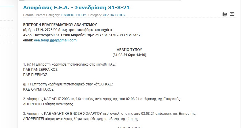 Τέλος, ενώ για τον Αρη παραμένει άγνωστο προς το ευρύ κοινό το ακριβές πρόβλημα, του Κολοσσού είναι απίστευτο ότι όπως αναφέρεται, κατατέθηκε εκπρόθεσμα ο φάκελος. Χάθηκε η προθεσμία δηλαδή και δεν έχει καν ανοιχτεί ο φάκελος.