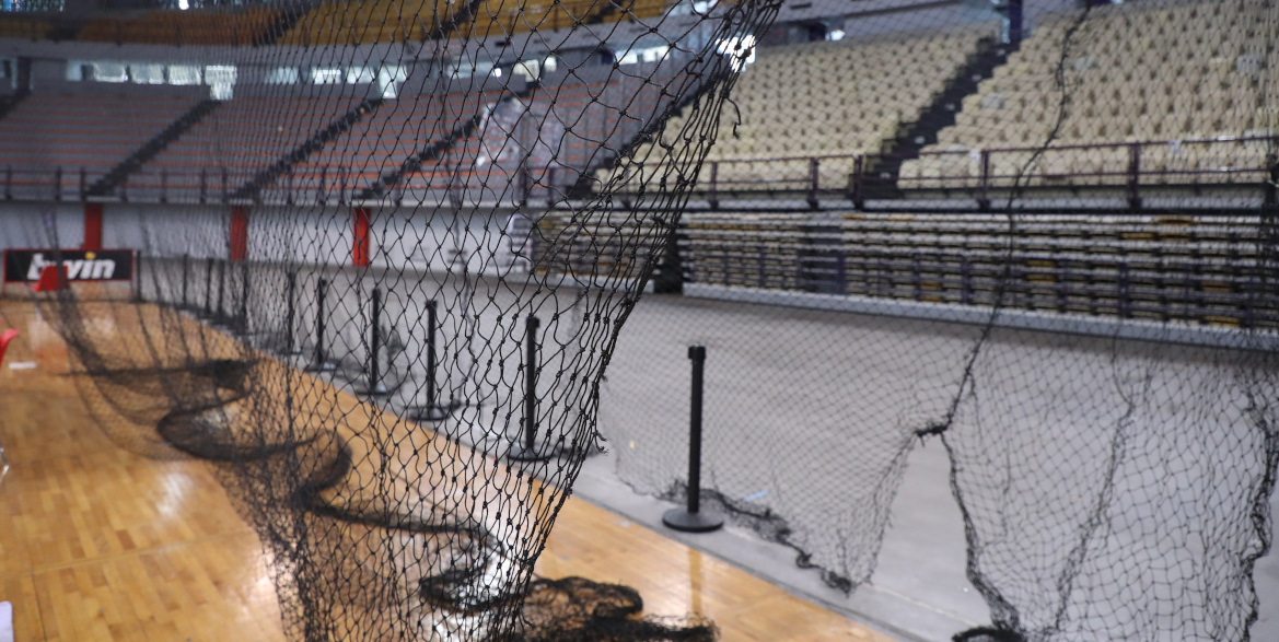 Συγκεκριμένα, τοποθέτησαν προστατευτικό δίχτυ ανάμεσα στο παρκέ και τις κερκίδες, ώστε να αποφύγουν τυχόν δυσάρεστα γεγονότα.