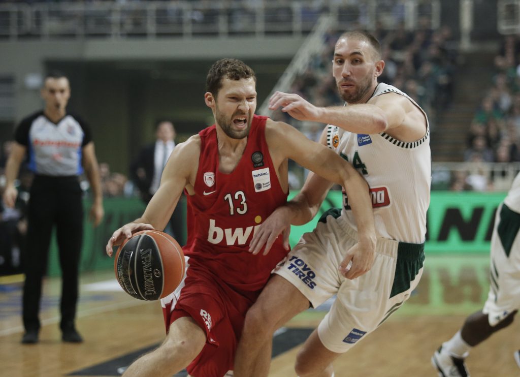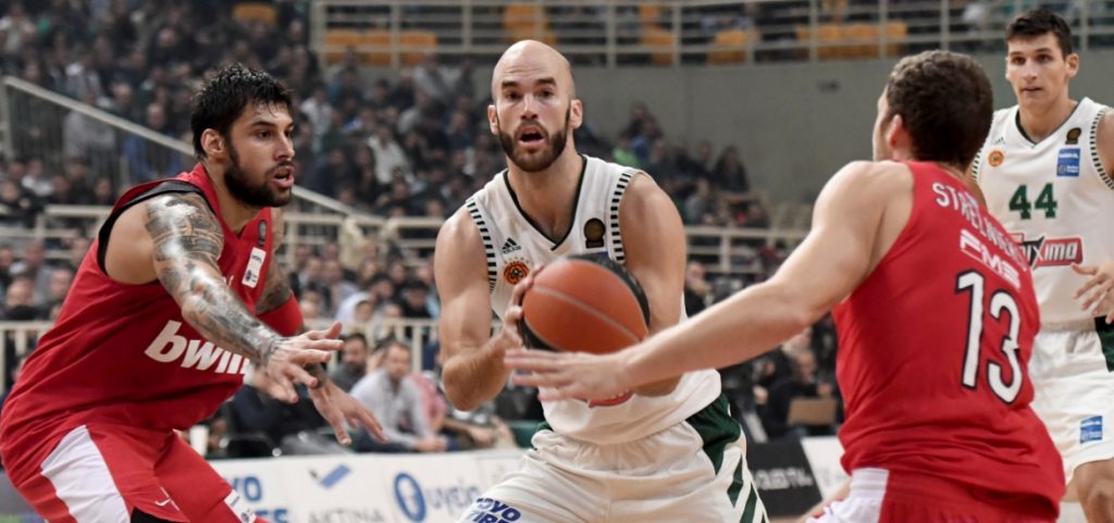 Οι «ερυθρόλευκοι» βρήκαν την ευκαιρία να ανοίξουν τον ρυθμό και το 20-19 έγινε 20-26 (14’18’’) με τους Λεντέι και Τίμα. Αυτός που ανέλαβε να αλλάξει για μία ακόμη φορά την εικόνα για τους «πράσινους» ήταν ο Νίκος Παππάς. Πήρε πάνω του επιθέσεις, ήταν εύστοχος και με ένα προσωπικό 6-0, εκτελώντας και τη βολή από την τεχνική ποινή που δέχθηκε ο Ντέιβιντ Μπλατ, διαμόρφωσε το 26-26 (16’). Ο Θανάσης Αντετοκούνμπο με μία ακόμη βολή έδωσε το προβάδισμα στον Παναθηναϊκό, που έκλεισε το πρώτο μισό προπορευόμενος (32-29).