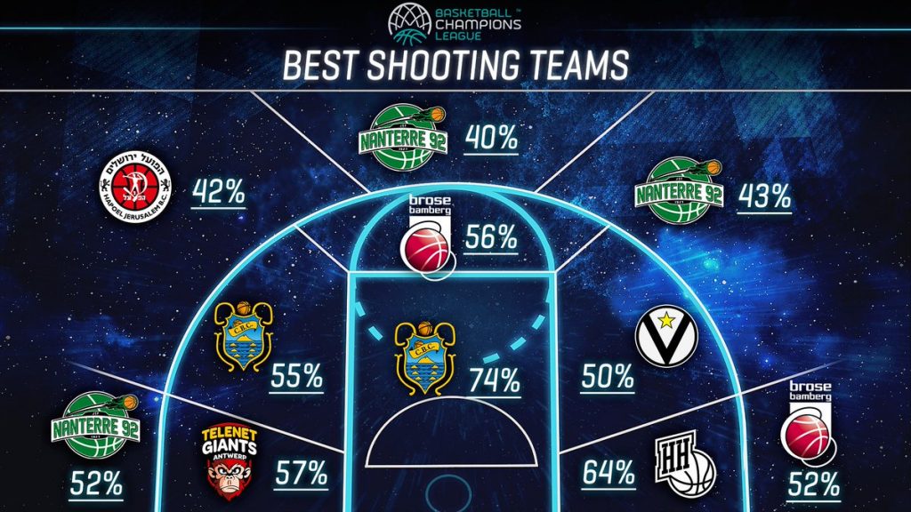 Το Basketball Champions League με ένα απλό γράφημα παρουσίασε ποια ομάδα σουτάρει καλύτερα από κάθε θέση στη παρκέ. Η Μπάμπεργκ , αντίπαλος της ΑΕΚ στα προημιτελικά της διοργάνωσης, βρίσκει την δική της θέση από δύο σημεία του παρκέ. Αυτό που είναι ξεκάθαρο είναι την Ναντέρ δεν την αφήνεις να σουτάρει για τρεις πόντους! Δείτε το γράφημα...