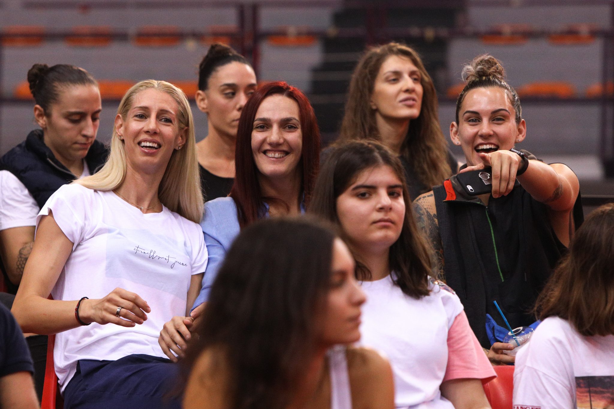 O Ολυμπιακός υποδέχθηκε στο ΣΕΦ τον Ερυθρό Αστέρα σε φιλικό αγώνα απόψε και η γυναικεία ομάδα ήταν εκεί για να στηρίξει την προσπάθειά του. Οι αθλήτριες και το τεχνικό επιτελείο δήλωσε το "παρών" στην εξέδρα και χειροκρότησε τις προσπάθειες των παικτών του Ντέιβιντ Μπλατ.