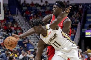 Οι «πελεκάνοι» έμειναν στο 0-5 στα φετινά παιχνίδια προετοιμασίας τους, παρά τους 36π. του Άντονι Ντέιβις, ο οποίος είχε και δεκαπέντε ριμπάουντ, τρεις ασίστ, δύο κλεψίματα, τέσσερα κοψίματα και δύο λάθη σε 31.22’. Άλλους 20π. με έντεκα ριμπάουντ είχε ο Τζούλιους Ραντλ, 15π. ο Νίκολα Μίροτις και 14π. αλλά με 6/11 σουτ εντός παιδιάς ο Τζρου Χόλιντεϊ.