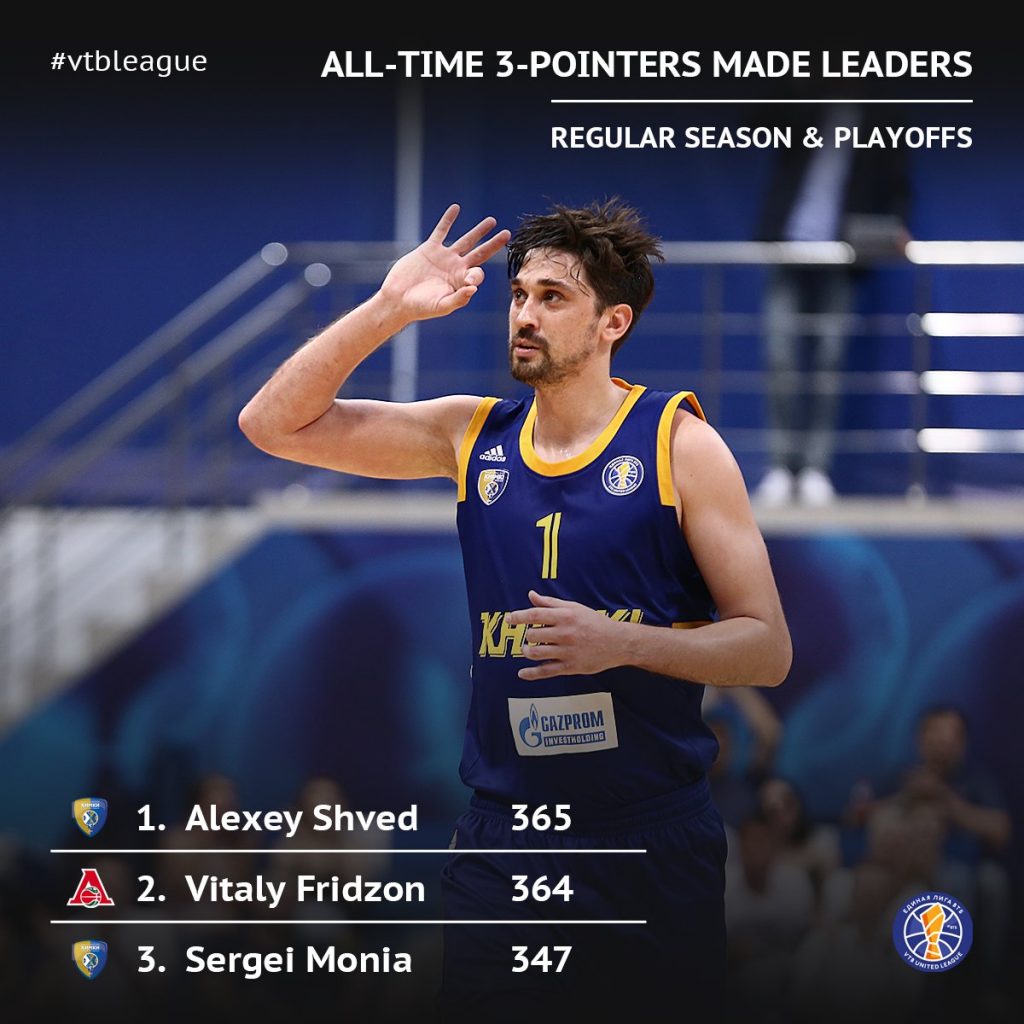 "Παρηγοριά" για τον Αλεξέι Σβεντ το γεγονός ότι είναι ο πλέον ο παίκτης με τα περισσότερα εύστοχα τρίποντα στην ιστορία της VTB League. Έφτασε στα 365, αφήνοντας στη δεύτερη θέση τον Βιτάλι Φριντζόν.