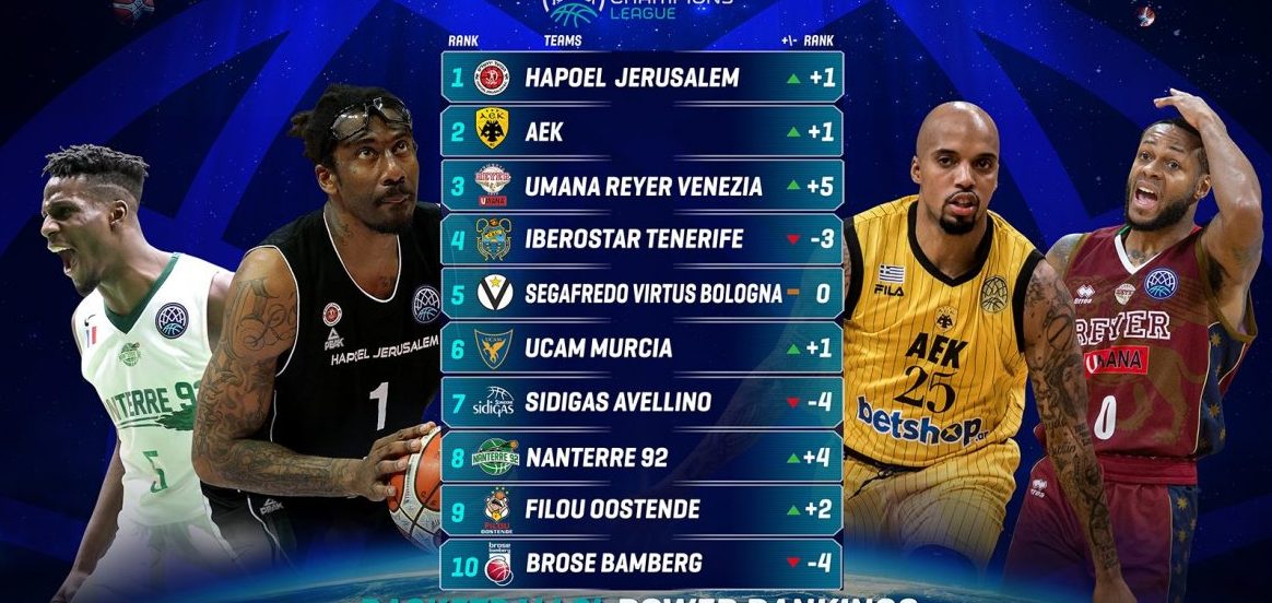 Η ΑΕΚ είναι η μοναδική από τις τρεις εκπροσώπους της Ελλάδας στο Basketball Champions League, που εμφάνισε άνοδο στο power ranking της διοργάνωσης, έστω κι αν έπεσε από την πρώτη θέση, που ήταν την προηγούμενη φορά, στη δεύτερη. Για την ακρίβεια, δεν έπεσε, αλλά ισοβαθμεί με την Χάποελ Ιερουσαλήμ, η οποία κερδίζει στα... σημεία, επειδή έχει δύο νίκες περισσότερες, σε δύο αγώνες περισσότερους πάντως, ως τώρα σε πρωτάθλημα και BCL: 22-7 έναντι 20-7 της Ένωσης. Μαζί τους είναι και η Βενέτσια, που βρίσκεται σε άνοδο τελευταία.