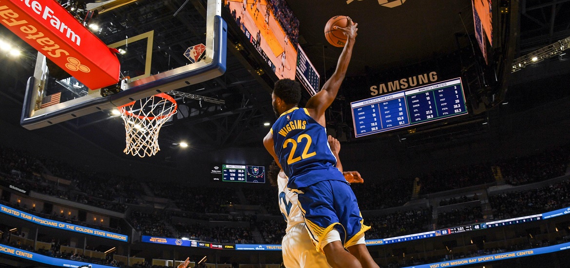 Ο Άντριου Ουίγκινς, περί ου ο λόγος, επιλέχθηκε στο νούμερο 1 του ντραφτ του 2014 από τους Μινεσότα Τίμπεργουλφς, με τους οποίους αναδείχθηκε και κορυφαίος ρούκι για το 2015 και από το 2020 φοράει τη φανέλα των Γκόλντεν Στέιτ Ουόριορς. Του αρέσουν τα καρφώματα και επιδίδεται σε αυτά σε κάθε ευκαιρία. Ο ίδιος έχει παραδεχθεί πως πρωτοκάρφωσε στα 13 του κι έσπασε το πρώτο ταμπλό στα 14. Πλέον, εντυπωσιάζει στα παρκέ του ΝΒΑ, έχοντας φέτος κατά μέσο όρο 19,1π., 4,4 ριμπάουντ και 1,6 ασίστ σε 29.8’, στα δεκαοκτώ παιχνίδια που έχει παίξει μέχρι στιγμής.