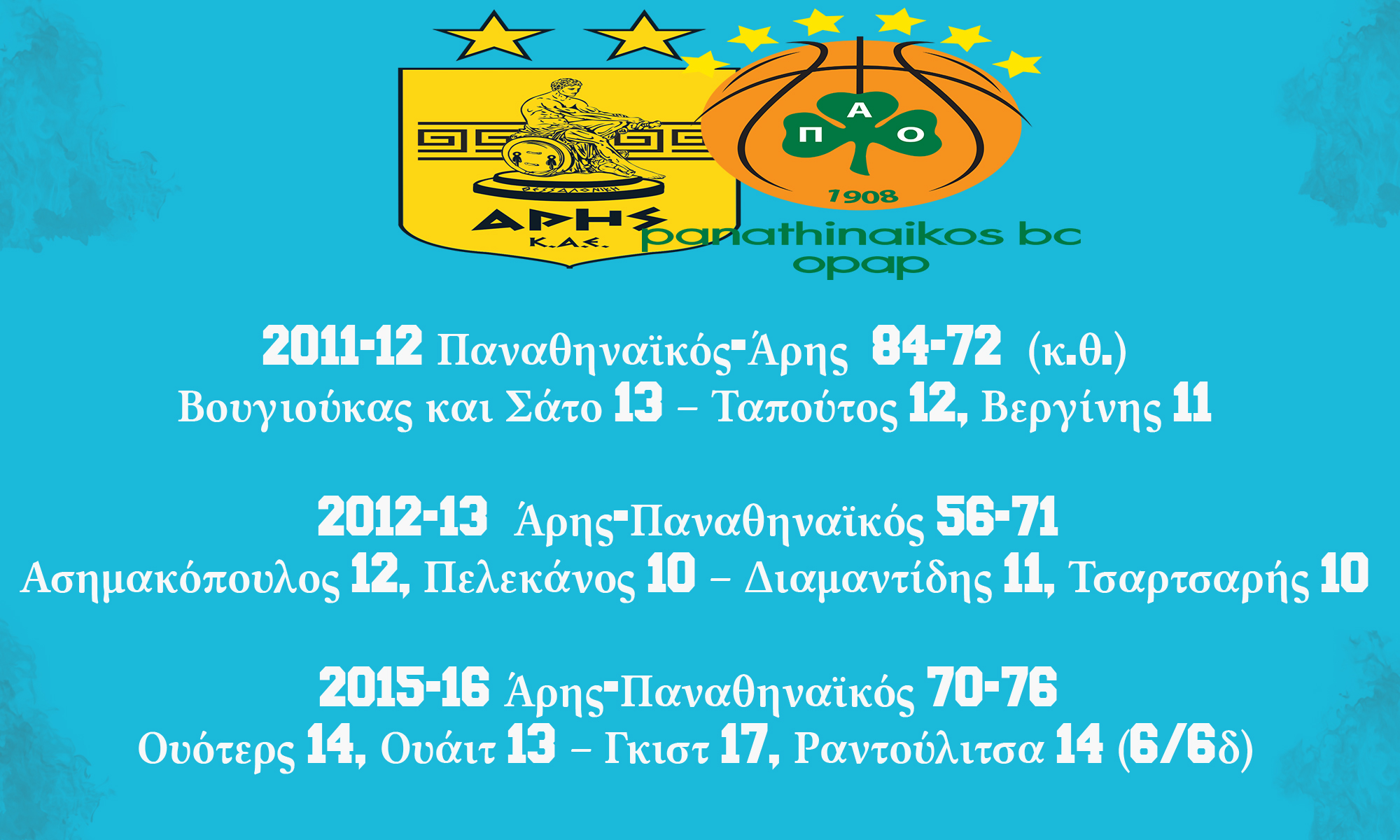 Τέσσερις από τις προηγούμενες έξι συναντήσεις των «κιτρινόμαυρων» και των «πράσινων» στην πρεμιέρα της Basket League, έγιναν με τον Άρη γηπεδούχο, κάτι που θα γίνει και στο φετινό Πρωτάθλημα ενώ και στις έξι, νικητής ήταν ο Παναθηναϊκός. Παρά τις έξι ήττες πάντως, ο Άρης ήταν ανταγωνιστικός τουλάχιστον στα μισά από αυτά τα παιχνίδια. Πιο κοντά στη νίκη έφτασε στο τελευταίο από αυτά.