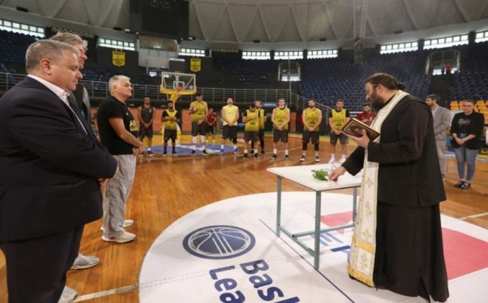 Αγιασμός τελέστηκε, πριν από την έναρξη της σημερινής (22/10) απογευματινής προπόνησης της ομάδας του ΑΡΗ. Ο Πατήρ Αριστείδης βρέθηκε για μια ακόμη χρονιά στο «Nick Galis Hall», ώστε να δώσει την ευλογία του και ευχήθηκε σε όλους: "Καλή Χρονιά, με υγεία, μακριά από τραυματισμούς και με επιτυχίες για την ομάδα".