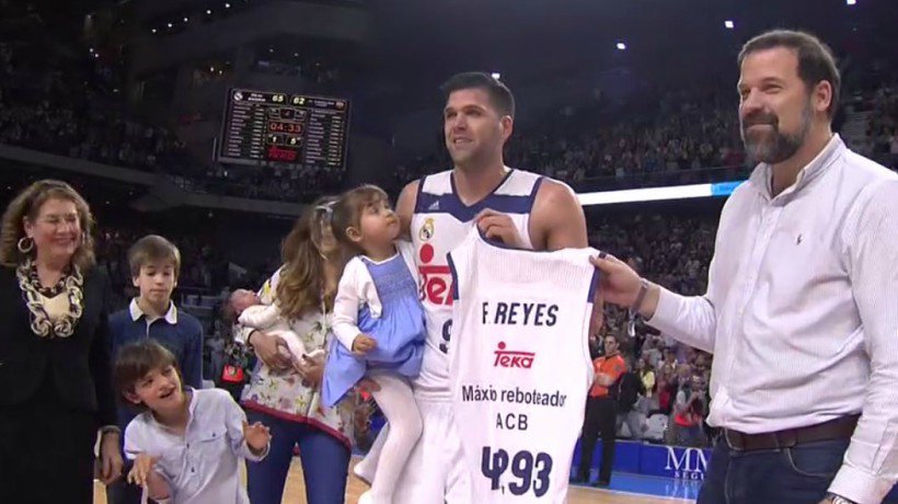 Μια φανέλα με τον αριθμό 4293, η σύζυγός του, η κόρη του στο παρκέ και όλο το γήπεδο να χειροκροτά με τον Ρέγες να δέχεται τα συγχαρητήρια και παικτών της αντίπαλης ομάδας.