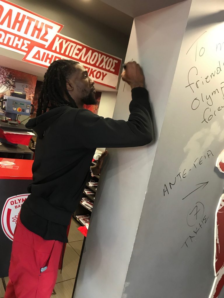 O Μπριάντε Ουέμπερ έκανε μια διαφορετική "ερυθρόλευκη" επίσκεψη το πρωί (26/3). Ο Αμερικάνος γκαρντ βρέθηκε στο Official Store Olympiacos BC στην Καραολή - Δημητρίου 8, στο Νέο Φάληροκαι έκανε τα ψώνια του. Μάλιστα έγραψε και την δική του αφιέρωση σε τοίχο του καταστήματος και φωτογραφήθηκε παρέα με την σύντροφό του που τον ακολούθησε από τις ΗΠΑ στο ταξίδι του στην Ελλάδα.