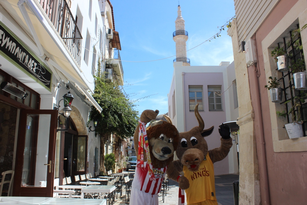 Στο περιθώριο του αγώνα του Ρεθύμνου με τον Ολυμπιακό για την 23η αγωνιστική της Basket League, η νέα μασκότ των γηπεδούχων, ο διάσημος πλέον "Κερατούκλης", υποδέχθηκε την αντίστοιχη των Πειραιωτών, τον "Θρυλέοντα" και σαν σωστός οικοδεσπότης τον ξενάγησε στα αξιοθέατα της πόλης.
