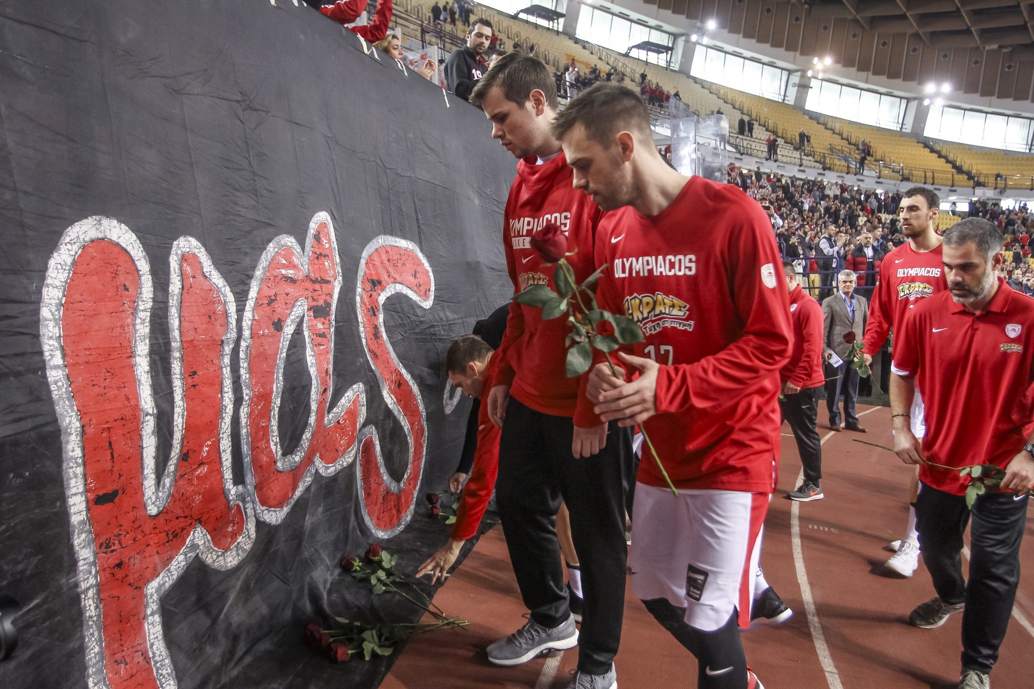 Όλη η ομάδα του Ολυμπιακού, αλλά και η ομάδα της Κύμης άφησαν ένα λουλούδι πριν το τζάμπολ για τα θύματα της τραγωδίας της 8ης Φεβρουαρίου 1981. Ήταν μια κίνηση συμβολική για τους 21 αδικοχαμένους φιλάθλους που έχασαν τη ζωή τους πριν από 37 χρόνια. Χθες έγινε και το ετήσιο μνημόσυνο στο μνημείο της Θύρας 7 έξω από το «Γ. Καραϊσκάκης».