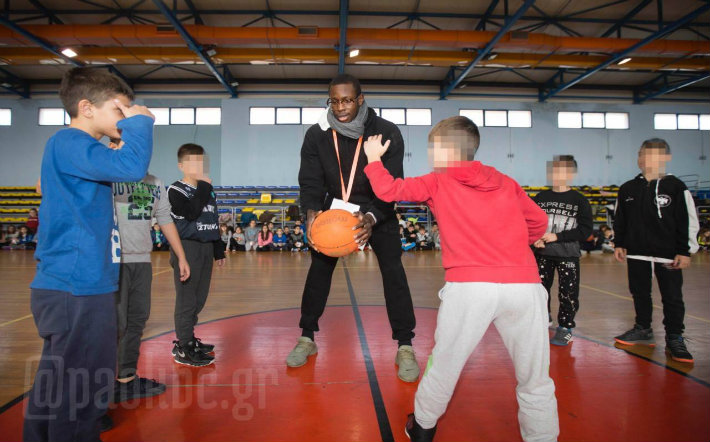 Ο σέντερ του ΠΑΟΚ μίλησε στα μικρά παιδιά για τον αθλητισμό, την απόφασή του να ασχοληθεί με το μπάσκετ ενώ βρήκε την ευκαιρία να παίξει μαζί τους, να βγάλει φωτογραφίες και να υπογράψει αυτόγραφα.