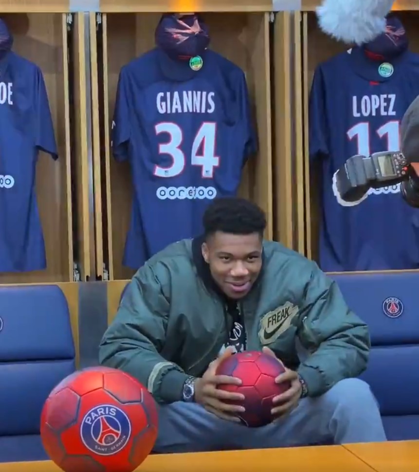Οι Μιλγουόκι Μπακς βρίσκονται στο Παρίσι για τον αγώνα τους με τους Χόρνετς στις 24 Ιανουαρίου και νιώθουν πιο κοντά στην Παρί Σεν Ζερμέν από ποτέ. Τα...αισθήματα είναι αμοιβαία και φάνηκε από την κίνηση της γαλλικής ομάδας να ετοιμάσει φανέλες για όλους τους παίκτες των Μπακς και να τις παρουσιάσει στην ξενάγηση της ομάδας στα αποδυτήρια της Παρί.