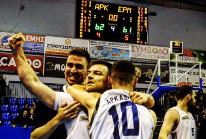 Ο Αρκαδικός έφτασε στην 5η του νίκη στο φετινό πρωτάθλημα, κερδίζοντας στην Τρίπολη τον Ερμή Αγιάς με 62-61, και κάνοντας μεγάλο βήμα προς την αποφυγή του άμεσου υποβιβασμού.