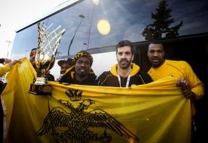 Ο Ντούσαν Σάκοτα, που εμφανίστηκε με το τρόπαιο ανά χείρας, ανέφερε αρχικά για το πώς αισθάνεται: «Μ’ αρέσει, το ήθελα στο δωμάτιό μου το βράδυ, αλλά μου το πήρε ο Λαρεντζάκης. Σίγουρα, όπως είπα και μετά το ματς, δεν είναι μόνο η κατάκτηση του τροπαίου, αλλά και ο τρόπος με τον οποίο ήρθε. Είχε πολλά χρόνια να κατακτήσει κάποιος το τρόπαιο έχοντας κερδίσει και τον Παναθηναϊκό και τον Ολυμπιακό. Δείξαμε χαρακτήρα. Κάναμε το καλύτερό μας παιχνίδι και κερδίσαμε. Όποτε βρισκόμασταν με την πλάτη στον τοίχο αντιδρούσαμε, έχουμε χαρακτήρα ως ομάδα, θέλουμε και συνέπεια».