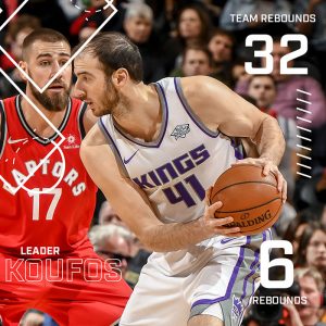 Βασικός ξεκίνησε ο Κώστας Κουφός, έχοντας έξι πόντους, ισάριθμα ριμπάουντ, τέσσερις ασίστ, δύο κλεψίματα κι ένα κόψιμο σε 25.26’, ενώ ο Γιώργος Παπαγιάννης έμεινε στο παρκέ για 11.53’ με απολογισμό τέσσερις πόντους, ισάριθμα ριμπάουντ κι ένα κόψιμο. Ο Γκάρετ Τεμπλ και ο Μπόγκνταν Μπογκντάνοβιτς, από 18π. έκαστος, αναδείχθηκαν πρώτοι σκόρερ των «βασιλιάδων», με τον Ντε Μαρ Ντε Ροζάν να ηγείται επιθετικά των Καναδών με 21π., ενώ 13π. με 16 ριμπάουντ είχε ο Γιόνας Βαλαντσίουνας και 16π. με εφτά ασίστ, πέντε ριμπάουντ και δύο κλεψίματα ο Κάιλ Λόουρι. Οι «πτερόσαυροι» συμπλήρωσαν τρεις διαδοχικές νίκες κι εννέα στα τελευταία δέκα παιχνίδια τους.