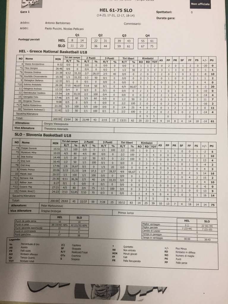 Η Εθνική Εφήβων ηττήθηκε από την Σλοβενία στην πρεμιέρα του τουρνουά του Πιομπίνο στην Ιταλία.Οι Σλοβένοι επικράτησαν 75-61. Η ελληνική ομάδα αντιμετωπίζει αύριο στις 19.00 την Ουκρανία.