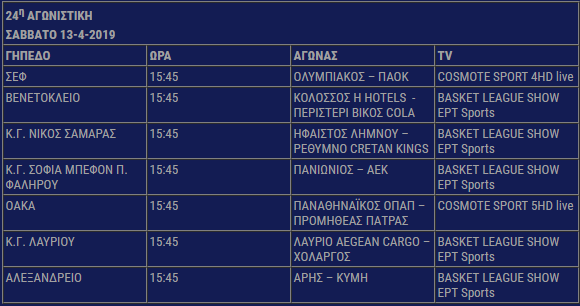 Αλλάζουν τα πράγματα στην 24η αγωνιστική, με τον ΕΣΑΚΕ να δημοσιεύει το πρόγραμμα σύμφωνα με το οποίο, όλα τα παιχνίδια θα γίνουν την ίδια μέρα (Σάββατο 13/4) και την ίδια ώρα (15.45) καθώς πλησιάζουμε στο τέλος της κανονικής περιόδου.
