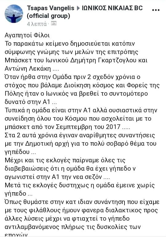 Το παρακάτω κείμενο δημοσιεύεται κατόπιν σύμφωνης γνώμης των μελών της επιτρόπης Μπάσκετ του Ιωνικού Δημήτρη Γκαρτζογλου και Αντώνη Λεκάκη ....
