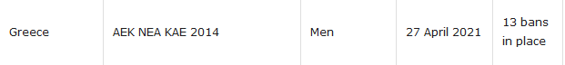 Ακόμη ένα Ban για την ΑΕΚ, η οποία παρότι είχε σβήσει δυο, με το ένα που προστέθηκε σήμερα (27/8) έφτασε τα 13.