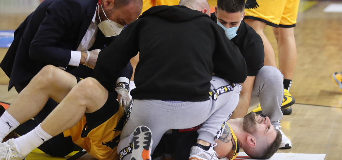 Ο 26χρονος γκαρντ στην προσπάθεια του να κλέψει την μπάλα πριν εκείνη καταλήξει στον Ξανθόπουλο, έπεσε στον αντίπαλο του. Στην πτώση του στο παρκέ, φάνηκε να γυρίζει το δεξί γόνατο του. Αποχώρησε υποβασταζόμενος και μένει να φανεί η σοβαρότητα του προβλήματος του.