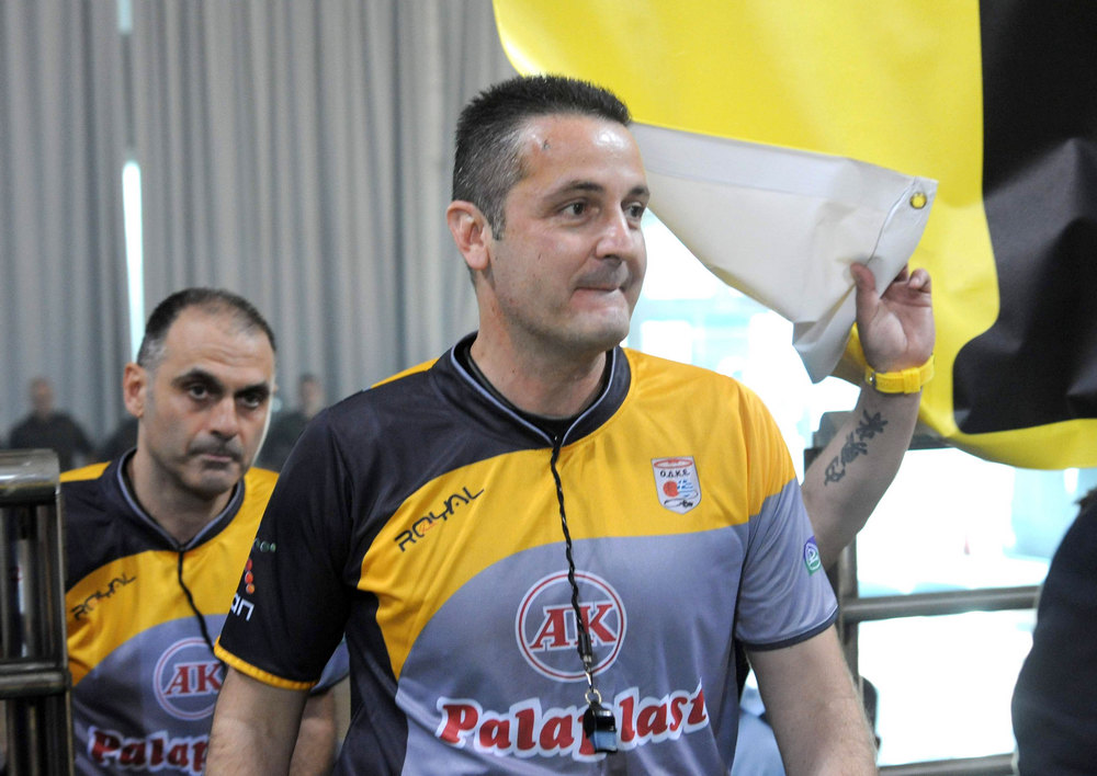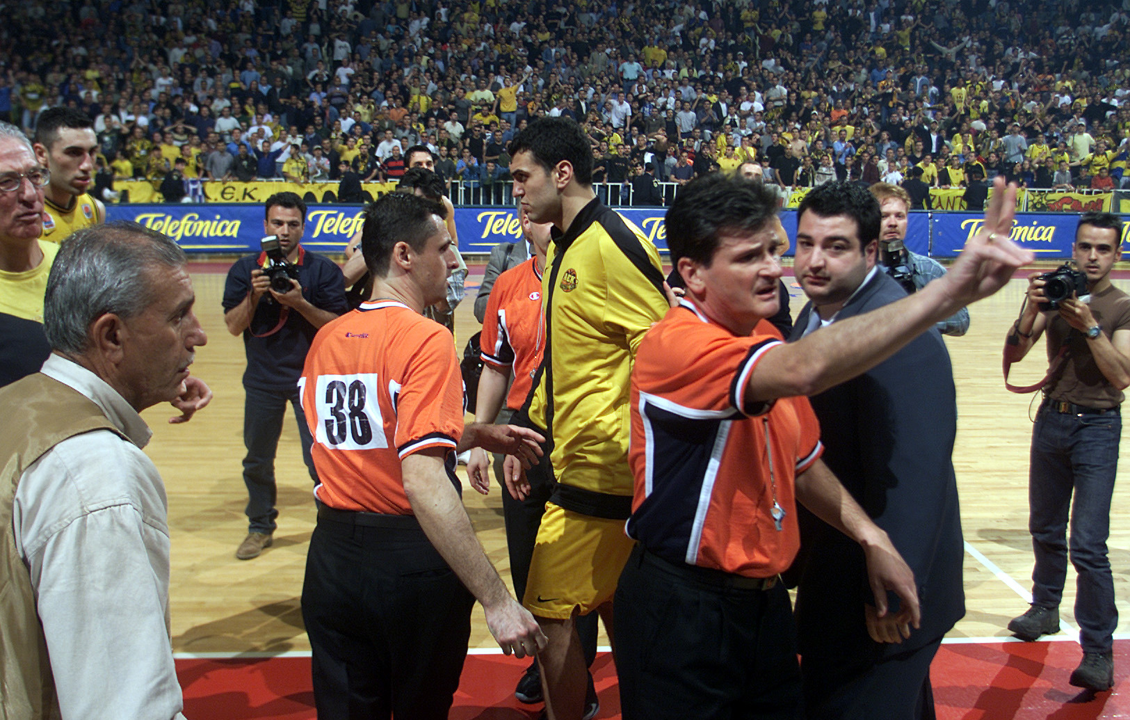 Λίγο πριν το τζάμπολ τον είχε χτυπήσει κάτω από το μάτι μια κορδέλα χαρτί και η ρίψη νομίσματος λίγο πριν το τέλος του ημιχρόνου, οδήγησε σε αυτήν την εξέλιξη. Συμπτωματικά διαιτητής και σε εκείνον τον αγώνα ήταν ο Χάρης Καρακατσούνης, όπως και το περασμένο Σάββατο στο ΟΑΚΑ!