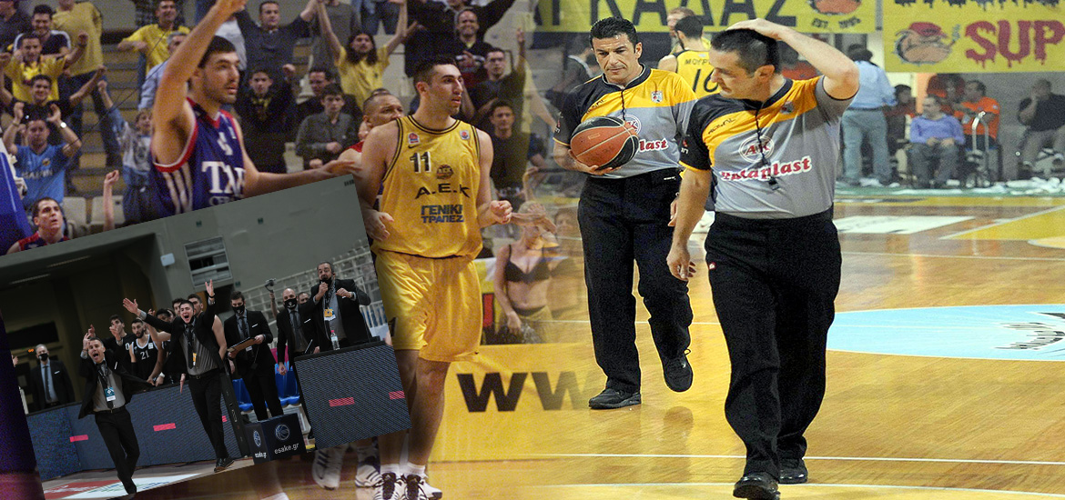 Αρκετά χρόνια νωρίτερα, για την Ευρωλίγκα της σεζόν 2000-01, την πρώτη δηλαδή της σύγχρονης εποχής, υπήρξε μια ακόμη περίπτωση αγώνα που επαναλήφθηκε. Ήταν για το πρώτο ματς της ημιτελικής φάση των πλέι οφ της διοργάνωσης όταν η ΑΕΚ αντιμετώπισε την Ταουγκρές -σημερινή Μπασκόνια. Ο αθλητικός δικαστής της Uleb, ο Πορτογάλος Χοσέ Μανουέλ Μεϊρίμ, είχε κρίνει ότι το καλάθι που σημείωσε ο Δήμος Ντικούδης και με το οποίο η ΑΕΚ νίκησε με 75-74, ήταν εκπρόθεσμο, κάτι που δεν είχε δει ο πρώτος διαιτητής, ο Κροάτης Ράντιτς. Έτσι ο αγώνας επαναλήφθηκε, η Ταουγκρές νίκησε και τελικά πέρασε στους τελικούς.