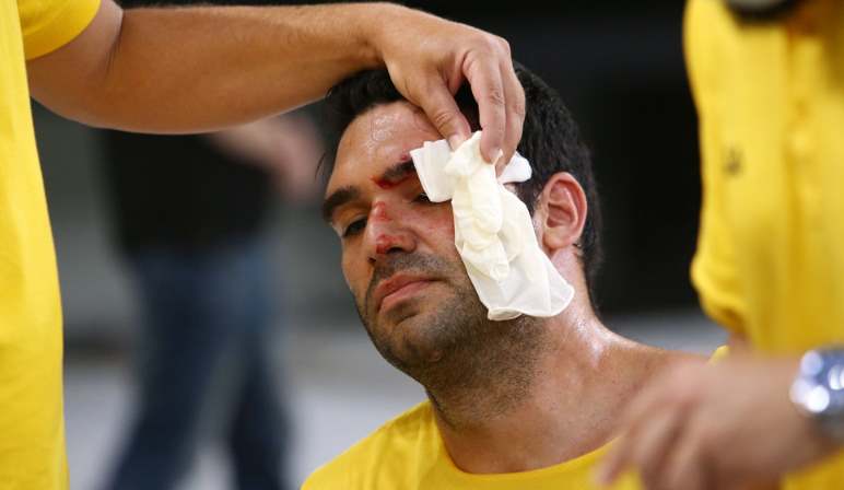 Ο Δημήτρης Μαυροειδής απέκτησε ένα μικρό χτύπημα λίγο πριν το τέλος της φιλικής αναμέτρησης της ΑΕΚ με τους London Lions, αντιμετωπίζοντας με το χαρακτηριστικό του χιούμορ την ατυχία του!