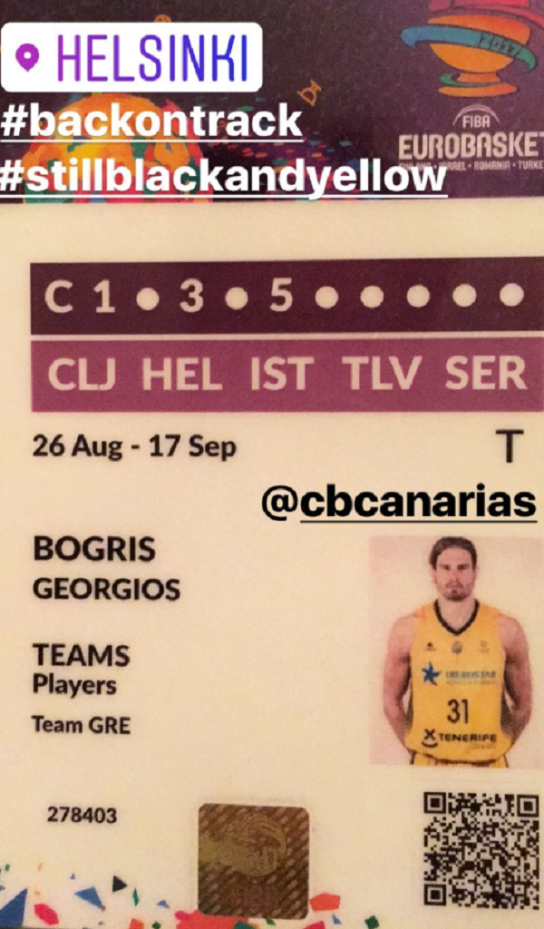 Μετά το Νίκο Παππά, και το σχόλιο που δέχθηκε από το Νικ Καλάθη, και ο Γιώργος Μπόγρης απόρησε με τη διαπίστευσή του, καθώς η φωτογραφία που επιλέχθηκε από τη Διεθνή Ομοσπονδία Καλαθοσφαίρισης είναι από την πρώην ομάδα του, την Τενερίφη. «Ακόμα κιτρινόμαυρος @cbcanarias», έγραψε ως σχόλιο στη φωτογραφία που δημοσίευσε μέσω των Instastories o 28άχρονος σέντερ που ανήκει πλέον στον Ολυμπιακό.
