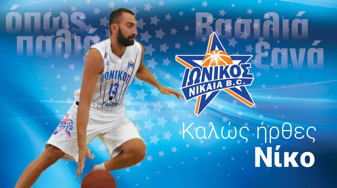 «Ο Νίκος Λιακόπουλος αποτελεί το πρώτο μεταγραφικό απόκτημα του Ιωνικού Νικαίας μετά την άνοδο της ομάδας μας στην Α2 κατηγορία. Ο 35χρονος γκαρντ με ύψος 1,91 θα αγωνίζεται στον Ιωνικό μας τα επόμενα χρόνια.