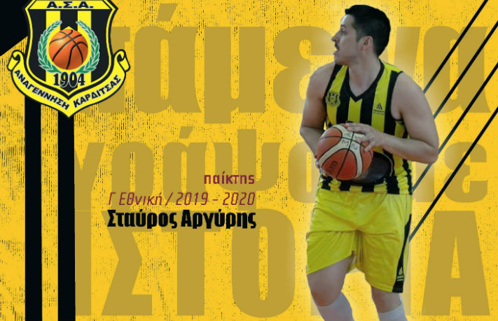 «Η Δ.Ε. του τμήματος Μπάσκετ του ΑΣ Αναγέννηση Καρδίτσας 1904 βρίσκεται στην ευχάριστη θέση να ανακοινώσει την ανανέωση της συνεργασίας με τον αθλητή Σταύρο Αργύρη. Έναν από τους περσινούς στυλοβάτες της ομάδας μας.