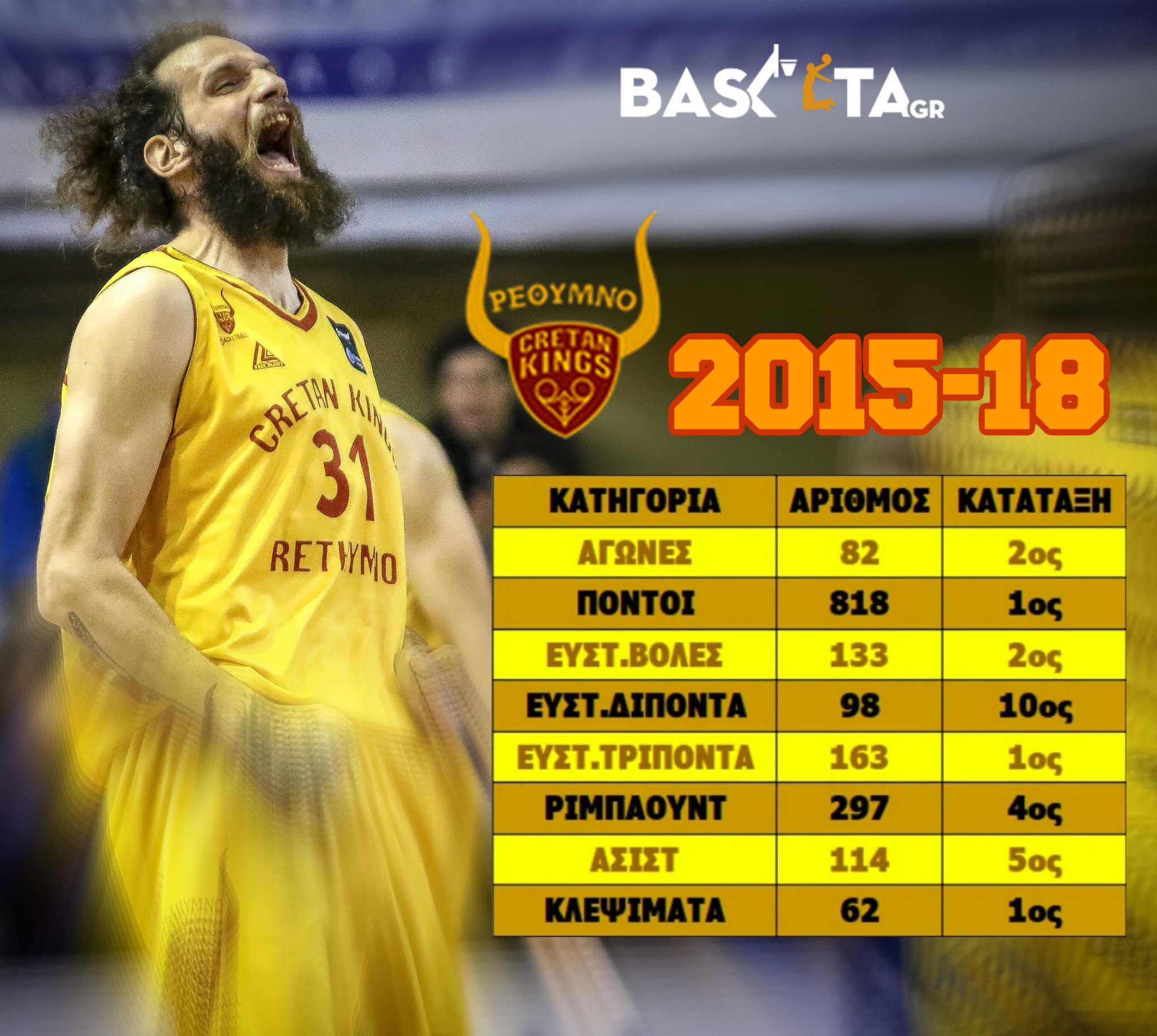 Ιδού λοιπόν οι αριθμοί και η κατάταξη του 29χρονου φόργουορντ στις λίστες του Ρεθύμνου...