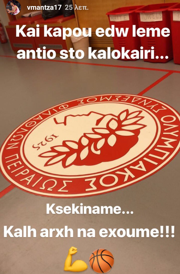 Ο 28χρονος γκαρντ ανέβασε μια φωτογραφία από τα αποδυτήρια του Ολυμπιακού, αναφέροντας : «Και κάπου εδώ λέμε αντίο στο καλοκαίρι...Ξεκινάμε...Καλή αρχή να έχουμε!!»