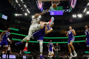 Οι Μιλγουόκι Μπακς διέλυσαν τους Σακραμέντο Κινγκς, στον ελληνικό εμφύλιο του ΝΒΑ, με τον 23χρονο γκαρντ/φόργουορντ να κάνει triple double και να βάζει το… κερασάκι με εντυπωσιακό κάρφωμά του μπροστά από τον 29χρονο φόργουορντ/σέντερ. H εντυπωσιακή ενέργειά του έκανε αμέσως το γύρο του διαδικτύου, με αποθεωτικά σχόλια…
