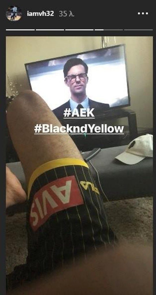 Ο 24χρονος φόργουορντ/σέντερ έχει ήδη μπει σε… κιτρινόμαυρο κλίμα, αφού παρότι δεν έχει επιστρέψει ακόμα από τις ΗΠΑ, για να ενσωματωθεί στην προετοιμασία της «Ένωσης» εν όψει της νέας αγωνιστικής περιόδου, έχει ήδη ντυθεί στα χρώματα της ομάδας. Θυμίζουμε πως το συγκρότημα του Λούκα Μπάνκι θα πραγματοποιήσει την επίσημη «πρώτη» στο ΟΑΚΑ την επόμενη εβδομάδα, αφού προηγηθούν οι απαραίτητες ιατρικές και εργομετρικές εξετάσεις. Δείτε, παρακάτω, τη φωτογραφία που δημοσίευσε ο Αμερικανός, βλέποντας τηλεόραση με τη φανέλα της ΑΕΚ...