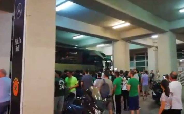 Οι «πράσινοι» όταν έφτασαν στο γήπεδό τους βρήκαν περίπου 150 οπαδούς τους οι οποίοι τους περίμεναν προκειμένου να τους αποθεώσουν.