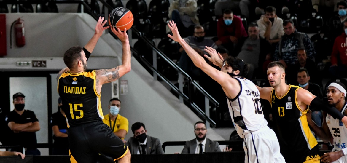 Ένα υπέροχο καλάθι σημείωσε ο Νίκος Παππάς στο φινάλε του πρώτου δεκαλέπτου του εκτός έδρας αγώνα της ΑΕΚ με τον Απόλλωνα Πάτρας.