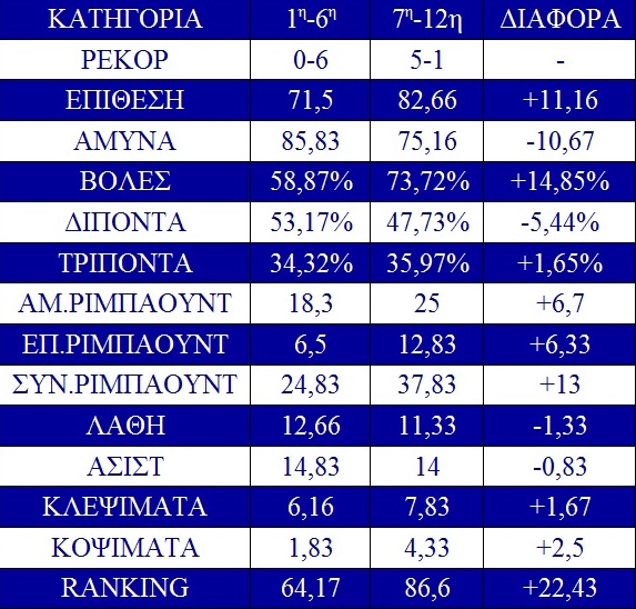Ο πίνακας που παραθέτει το basketa.gr εμφανίζει τις μεγάλες διαφορές της Κύμης των έξι πρώτων με τις έξι τελευταίες αγωνιστικές του πρωταθλήματος.