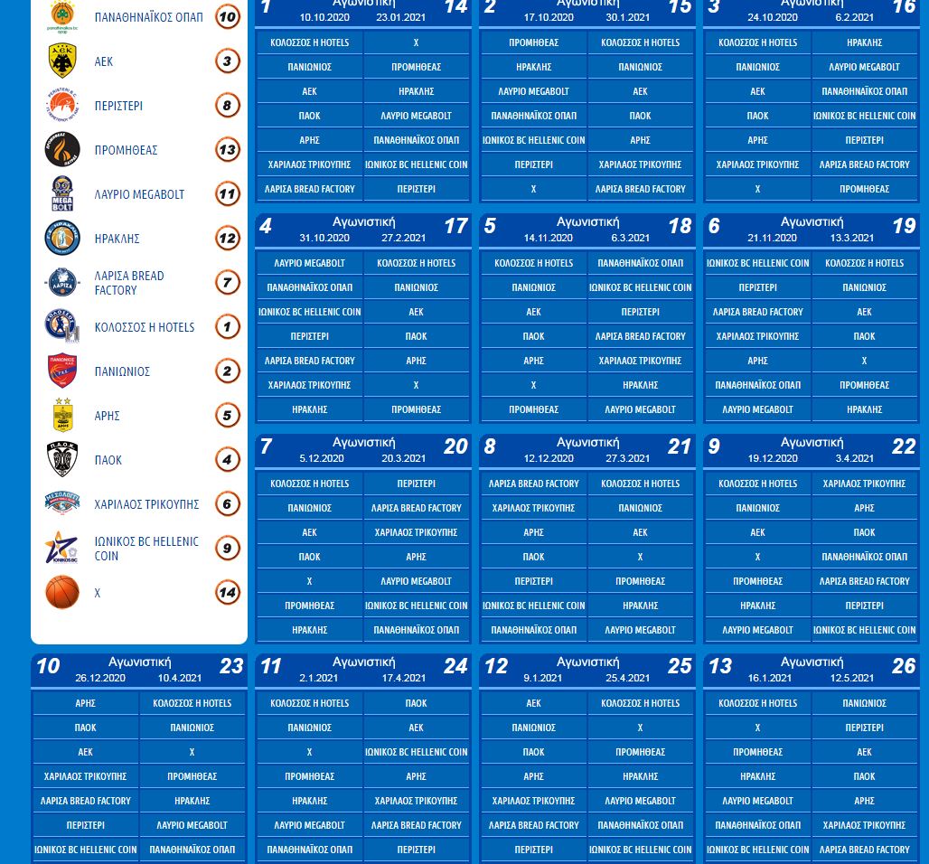 Με παρουσία εκπροσώπων από 11 ομάδες από τις 13 που έχουν δικαίωμα συμμετοχής στην ερχόμενη Basket League, ολοκληρώθηκε πριν από λίγο η κλήρωση του πρωταθλήματος που έχει προγραμματιστεί να αρχίσει στις 10/10. Σε κάθε αγωνιστική θα υπάρχει και ένα ρεπό λόγω του μονού αριθμού ομάδων.