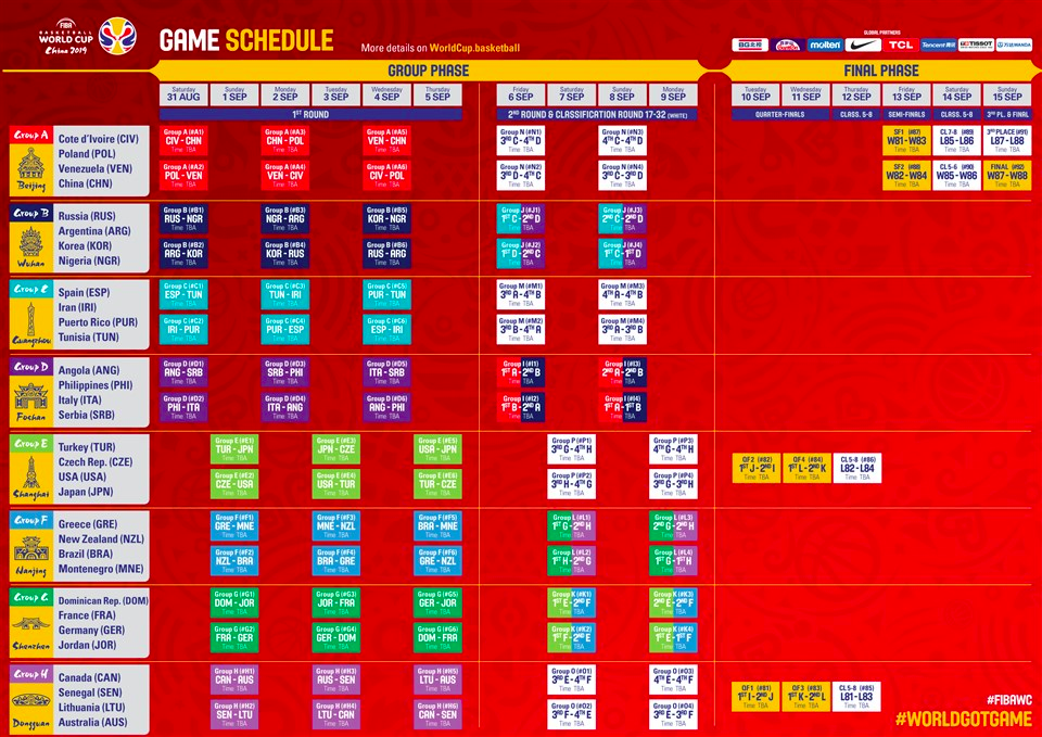 Το Παγκόσμιο Κύπελλο της Κίνας έρχεται, με την FIBA να παρουσιάζει ολόκληρο το πρόγραμμα, κάνοντας μερικές διαφοροποιήσεις σε δύο ομίλους.