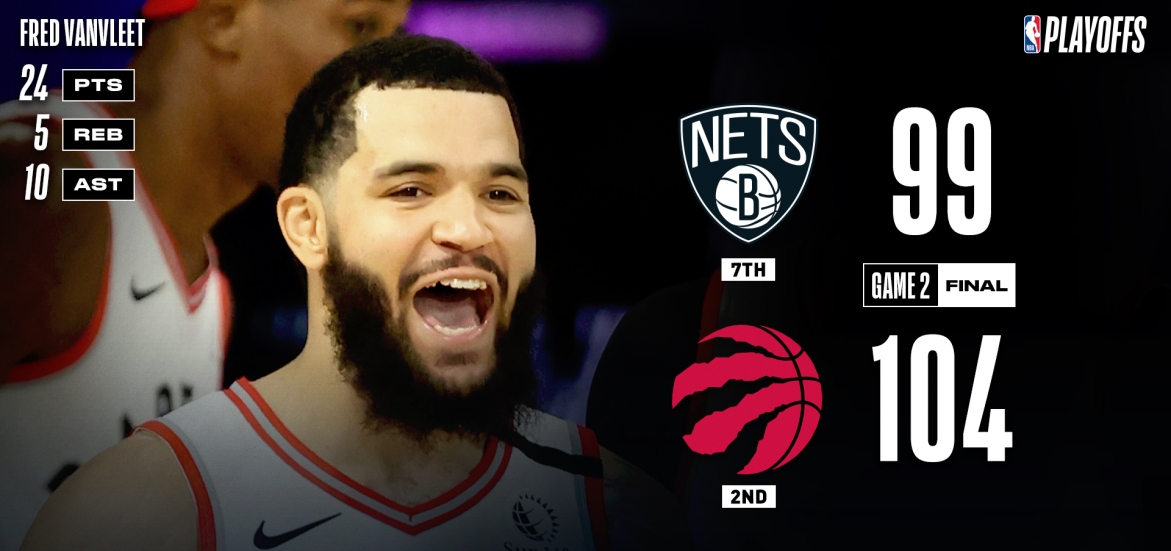 Ο ΒανΦλιτ με 24 πόντους και δέκα ασίστ ήταν ο κορυφαίος των Ράπτορς και ακολούθησαν οι Νόρμαν Πάουελ (24), Κάιλ Λόουρι (21), Πασκάλ Σιακάλ (19). Για τους Νετς των πολλών απουσιών ο Γκάρετ Τεμπλ είχε 21 πόντους και πιο πίσω βρέθηκαν οι Καμπαρό (17), ΛεΒερτ (16 και 11 ασίστ).