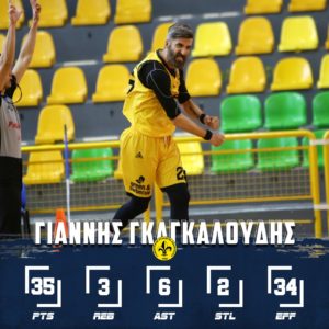 Ο Γκαγκαλούδης στη νίκη του Αμαρουσίου επί του Οίακα στο Ναύπλιο για την 14η αγωνιστική είχε 35 πόντους με 7/14 τρίποντα, τρία ριμπάουντ, έξι ασίστ, δύο κλεψίματα και 34 στο σύστημα αξιολόγησης. Απέναντι στην Καρδίτσα για την 15η αγωνιστική είχε 32 πόντους με 8/11 τρίποντα, δύο ριμπάουντ, ένα κλέψιμο και 31 στο σύστημα αξιολόγησης.