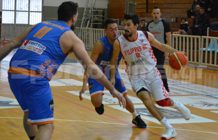 Στην Βέροια ο Φίλιππος έκανε ένα ακόμα βήμα προς την παραμονή του, φτάνοντας σε θρίαμβο επί του αδύναμου Αμύντα με εντυπωσιακό τον Ευθύμη Κοθρά (26 π., 6/9 διπ., 3/7 τριπ.), και μετά το άνετο 75-57, έκλεισε τον πρώτο γύρο με 5 νίκες. Οι νικητές είχαν 12/27 τρίποντα, κυριάρχησαν στα ριμπάουντ (39-27), ενώ είχαν επίσης σε καλή κατάσταση τους Μίλαν Ντρεκάλοβιτς (16 π., 3/4 διπ., 3/5 τριπ., 6 ριμπ., 3 ασίστ), Γιάννη Τσούκα (13 π., 3/6 τριπ., 5 ριμπ., 5 ασίστ) και Δάνη Ελευθεριάδη (9 π., 14 ριμπ., 4 ασίστ), και έτσι με μια εντυπωσιακή δεύτερη περίοδο έκλεισε το ημίχρονο στο 38-27, για να την φτάσει και στο +23 (71-48) στο 37'. Απογοητευτικός ο Αμύντας, είχε μόλις ένα διψήφιο.