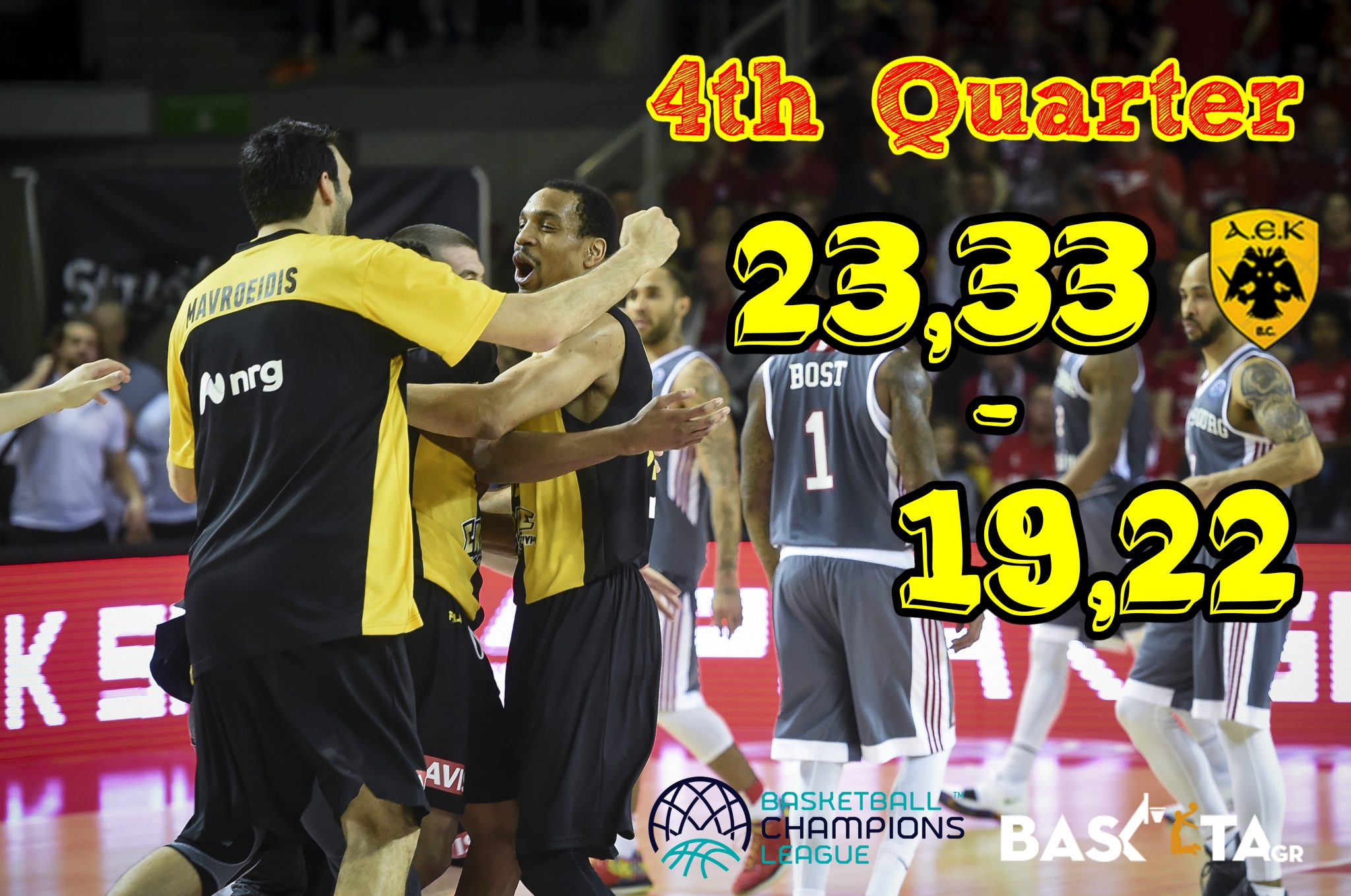 Η ΑΕΚ σημείωσε 74 πόντους περισσότερους από τους αντιπάλους της στη διάρκεια του 4ου δεκαλέπτου των 18 αγώνων στο BCL, επιδεικνύοντας τη μεγαλύτερη επιθετική παραγωγικότητα της σε σχέση με τα τρία πρώτα δεκάλεπτα αφού ξεπέρασε τους 23 πόντους κατά μέσο όρο.