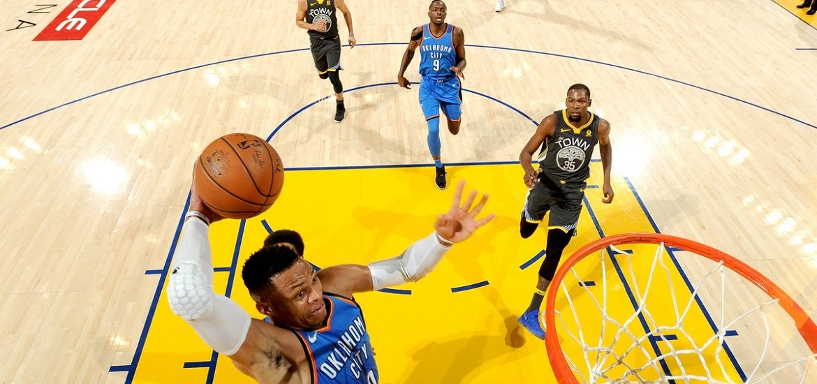 Δίδυμο-«φωτιά» για τις «βροντές» ήταν οι Ράσελ Ουέστμπρουκ με 34π., εννέα ριμπάουντ και ισάριθμες ασίστ και Πολ Τζορτζ με 38π., πέντε ριμπάουντ, έξι κλεψίματα και τρεις ασίστ, ενώ «διπλός» ήταν ο Στίβεν Άνταμς με 14π. και 10 ριμπάουντ. Με 25 λάθη και «φτωχά» ποσοστά ευστοχίας οι «πολεμιστές» δεν κατάφεραν να είναι ανταγωνιστικοί κι έχασαν για πρώτη φορά στην έδρα τους από τους Θάντερ ύστερα από πέντε χρόνια. Ο Κέβιν Ντουράντ αναδείχθηκε πρώτος σκόρερ με 33π., ο Στεφ Κάρι είχε 21π., πέντε ριμπάουντ, ισάριθμες ασίστ, ένα κλέψιμο κι άλλο ένα κόψιμο και ο Κλέι Τόμπσον έμεινε στους 12π.