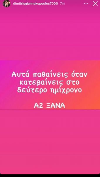 «Αυτά παθαίνεις αν κατεβαίνεις στο δεύτερο ημίχρονο. Α2 ΞΑΝΑ», έγραψε ο ίδιος σε story, θεωρώντας... λάθος των «ερυθρολεύκων» να μην φύγουν στο ημίχρονο.