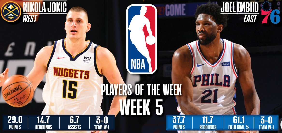Ο Νίκολα Γιόκιτς και ο Τζόελ Εμπίντ αναδείχθηκαν παίκτες της εβδομάδας στο ΝΒΑ.