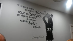 Στον κατάλογο υπάρχουν και μενού ΝΒΑ και ACB με την ονομασία τους να παραπέμπει απόλυτα στο μπάσκετ όπως "Πρώτο δεκάλεπτο" για μια ατομική μερίδα ή "Τάιμ άουτ" για μενού περισσοτέρων ατόμων. Η κατηγορία "Διαιτητές" αναφέρεται στα ποτά από το πιο ακριβό κρασί μέχρι το μεταλλικό νερό. Οπως είπαμε στους τοίχους υπάρχουν και ατάκες διάσημων παικτών, όπως αυτή που βλέπετε στη φωτογραφία και ανηκει στον Λάρι Μπέρντ («Εχω τη θεωρία πως αν δίνεις το 100% συνεχώς, με κάποιον τρόπο τα πράγματα πηγαίνουν καλά στο τέλος»)